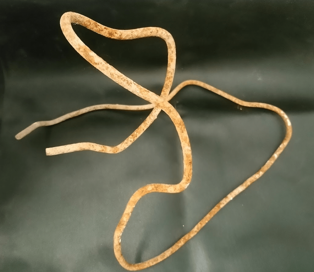 On my second trip to the site less of interest was available as new material had covered much of it. This caught my eye it is .75 meter and is bent beyond recognition but still maintains a reminder of its original use as a support of some kind for many years, then its destruction has left it bent in a sculptural way. I felt when I saw it that this energy traveled around it still and I wanted to make it into a solid unit to form something new. Cornelia Parker has utilised destruction in much of her work and the contrast of the ‘broken’. We can find beauty in destruction perhaps it is a human desire to destroy things so that we can begin again?