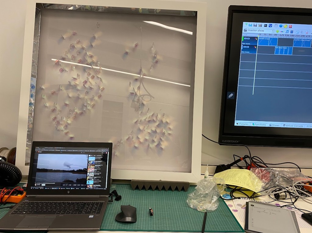 As a UOS Fine Art Undergraduate in 2019, I jumped at the chance to respond to The Engagement Team’s open call on energy, curated by DCC who manage the critical information gathered from homes and business through our Smart Meters. My work sought to express the weight of climate change through light, energy, movement, and time. I chose to explore the powerful imagery of a starling murmuration as a metaphor illustrating how energy use and requirements on the grid ebb and flow. My passion for solar energy drove me to create a piece emphasizing the crucial role of Smart Meters in improving the UK’s energy efficiency, security, and emissions reduction. I was thrilled to be awarded the commission with financial support for materials and a voucher. Fuelled by excitement, I set forth to make my art come alive.