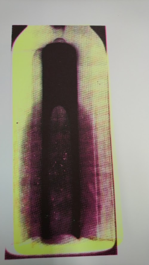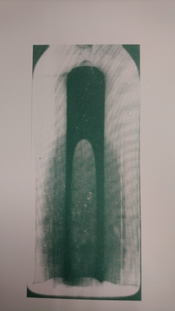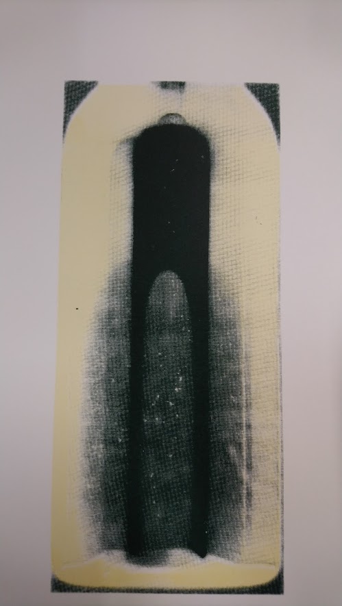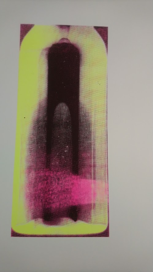 The small bottle of flood water that I had collected from a recent trip to Venice was photographed with a Photogram using .5 of a second of light to leave an impression on the paper. A fraction of time can create an image reminding us that a small change in sea levels can have a devastating impact on the world and particularly the beautiful city of Venice. Water and plastic (an everyday material) created the image which I reproduced in the form of a screen print. I chose the bright dayglow orange to represent a warning and contrast with traditional renaissance style. The cathedral like image formed by the water in the bottle reminded me of the city’s priceless architecture and everything that is at stake in this moment in Venice.