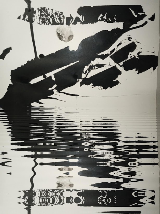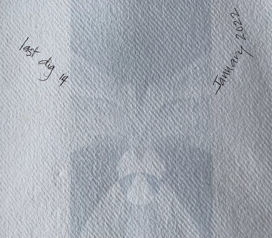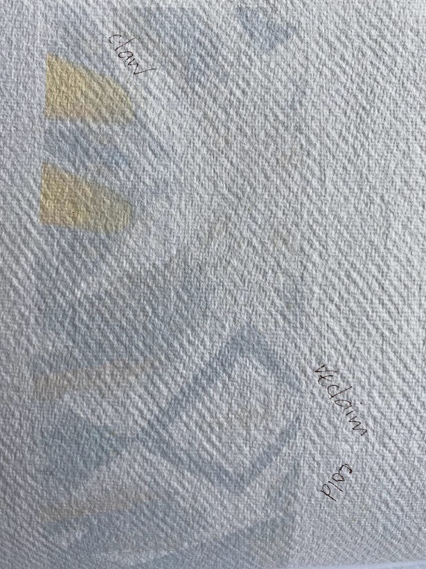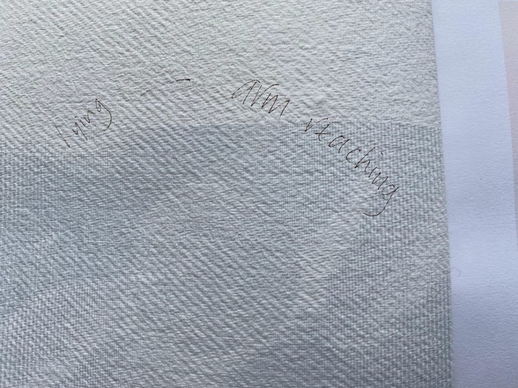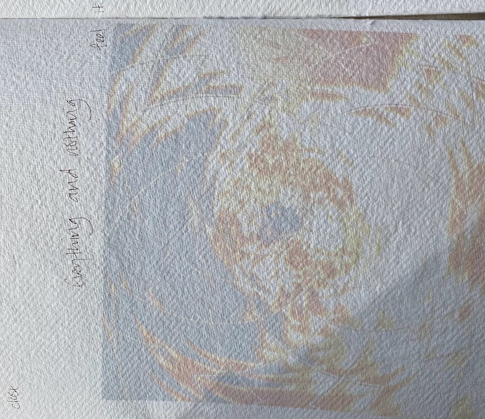 My response (below) was to make a notebook using different textures of paper and reproduce the images I was working on in the form of watermarks. This drew back and reduced the images making space for thoughts about each as contemplations on the work that HA was making.