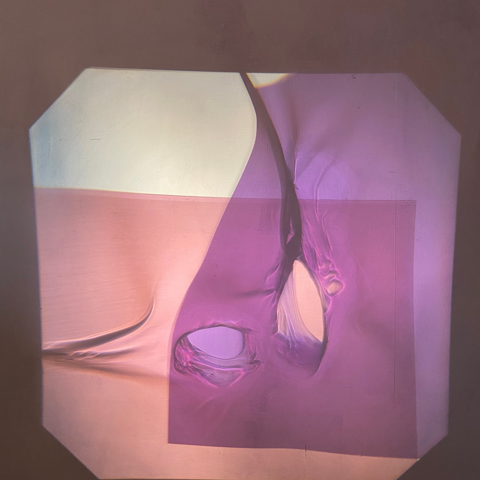 The Torus/Gordian Knot appeared in some of the glitched images made up of reflections of the body. According to legend whoever could untie the Gordian Knot would conquer Asia. Alexander the Great’s biographers report that during his stay in the Phrygian city of Gordium (now central Turkey), he attempted to disentangle the famous knot. But unable to find the ends of the knot, Alexander took his sword and slicing through it opened the way to his conquest of Asia and the fulfillment of the prophecy. We liked this as a metaphor for parenthood and the inability to see where the child begins and the mother ends.