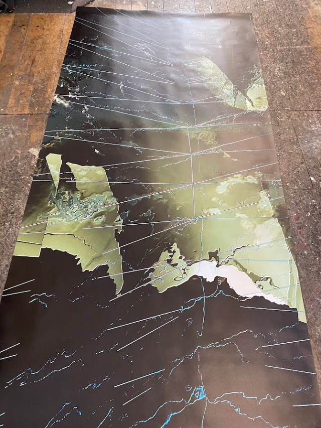 The original image had to be improved (from VR) to be printed on the billboard and seeing it on the floor of the studio was amazing, it revealed all of the marks and shapes that I had experienced virtually with the headset. The billboard degrades in the weather over the period of the exhibition, however the interaction was still visible until it was removed.